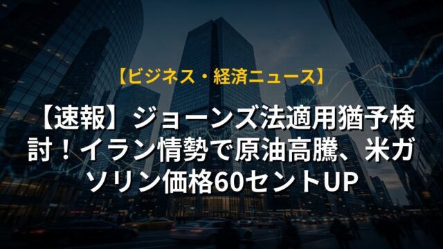 【速報】ジョーンズ法適用猶予検討!イラン情勢で原油高騰、米ガソリン価格60セントUP