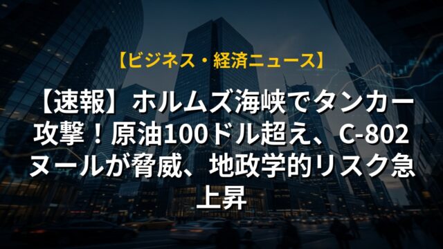 【速報】ホルムズ海峡でタンカー攻撃!原油100ドル超え、C-802ヌールが脅威、地政学的リスク急上昇