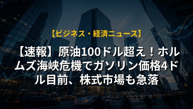 【速報】原油100ドル超え!ホルムズ海峡危機でガソリン価格4ドル目前、株式市場も急落