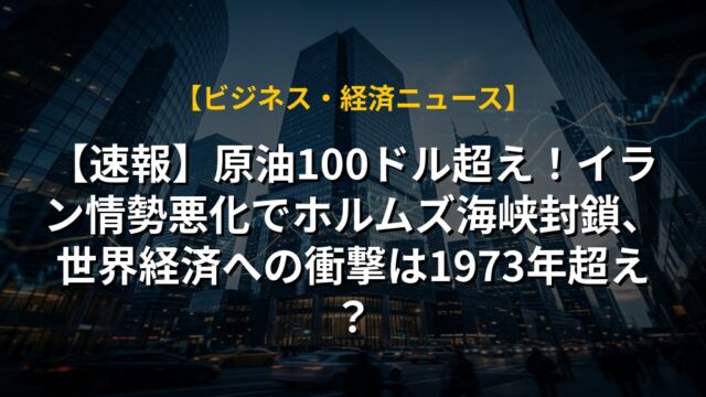 【速報】原油100ドル超え!イラン情勢悪化でホルムズ海峡封鎖、世界経済への衝撃は1973年超え?