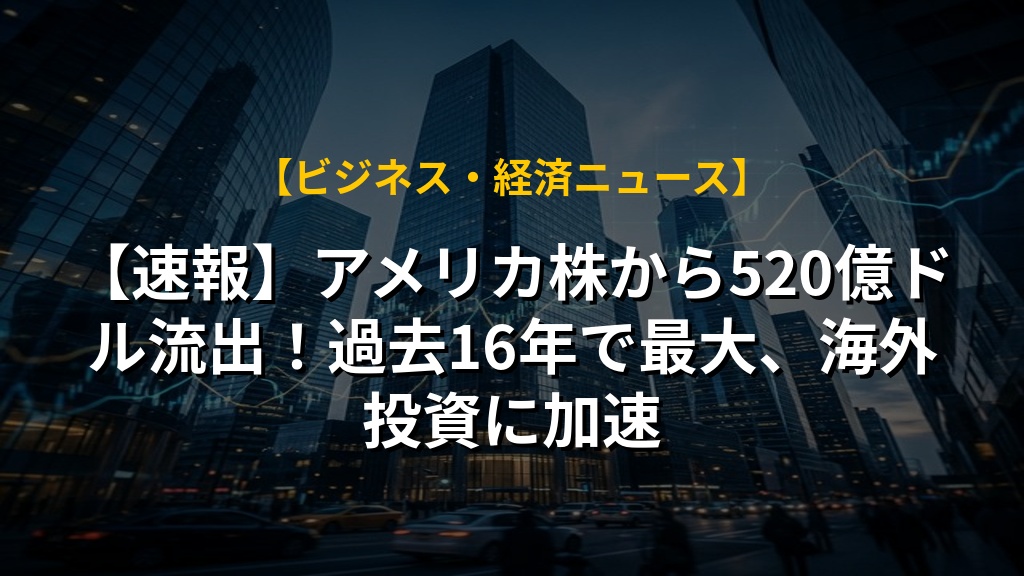 【速報】アメリカ株から520億ドル流出!過去16年で最大、海外投資に加速