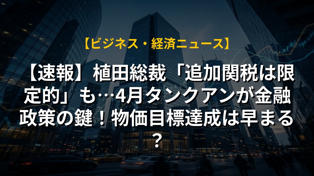 【速報】植田総裁「追加関税は限定的」も…4月タンクアンが金融政策の鍵!物価目標達成は早まる?