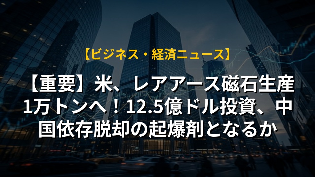 【重要】米、レアアース磁石生産1万トンへ!12.5億ドル投資、中国依存脱却の起爆剤となるか