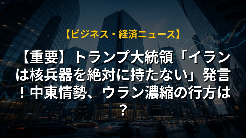 【重要】トランプ大統領「イランは核兵器を絶対に持たない」発言!中東情勢、ウラン濃縮の行方は?