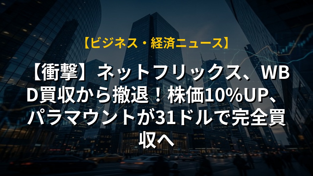 【衝撃】ネットフリックス、WBD買収から撤退!株価10%UP、パラマウントが31ドルで完全買収へ