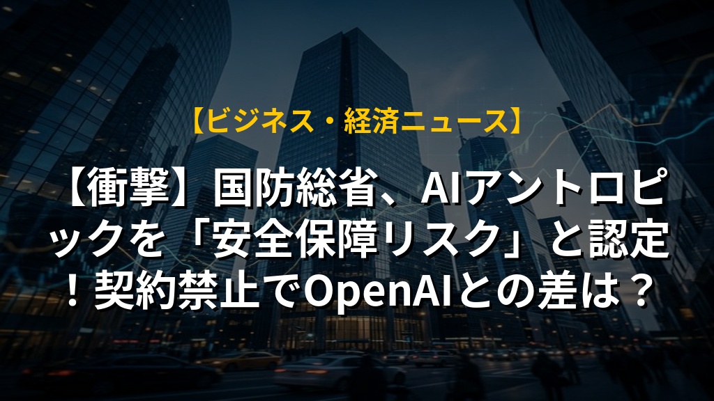 【衝撃】国防総省、AIアントロピックを「安全保障リスク」と認定!契約禁止でOpenAIとの差は?