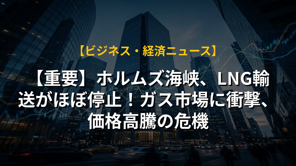 【重要】ホルムズ海峡、LNG輸送がほぼ停止!ガス市場に衝撃、価格高騰の危機