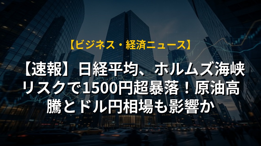 - ホルムズ海峡の封鎖報道で日経平均は一時1,500ポイント超下落、エネルギー価格上昇が企業業績への影響を懸念。