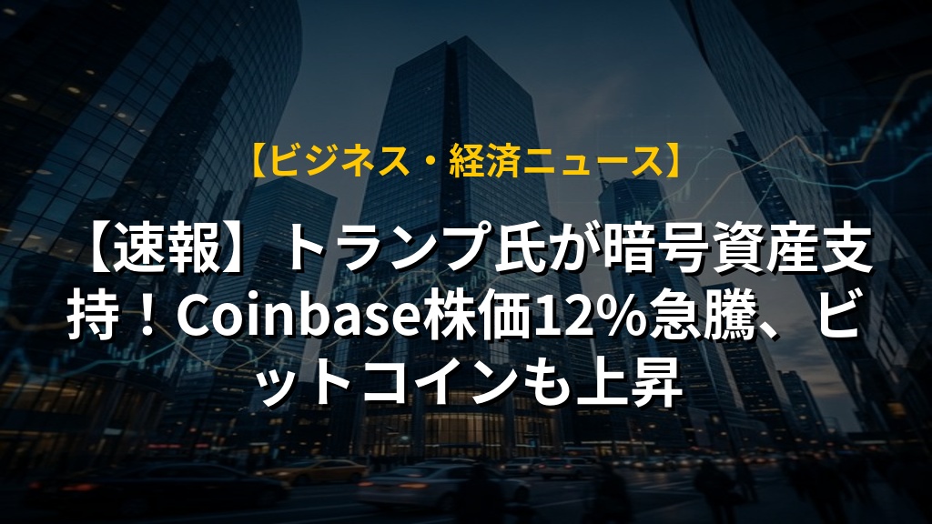 【速報】トランプ氏が暗号資産支持!Coinbase株価12%急騰、ビットコインも上昇