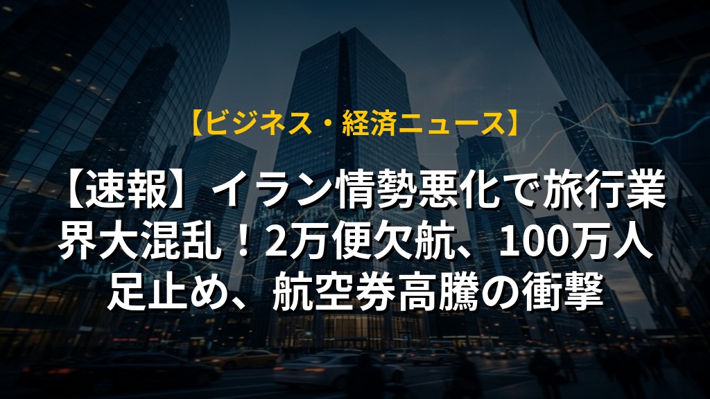 【速報】イラン情勢悪化で旅行業界大混乱!2万便欠航、100万人足止め、航空券高騰の衝撃