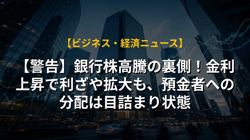 【警告】銀行株高騰の裏側!金利上昇で利ざや拡大も、預金者への分配は目詰まり状態