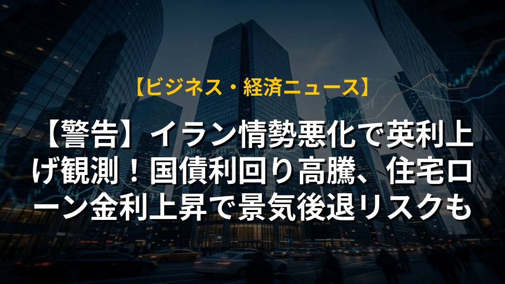 【警告】イラン情勢悪化で英利上げ観測!国債利回り高騰、住宅ローン金利上昇で景気後退リスクも