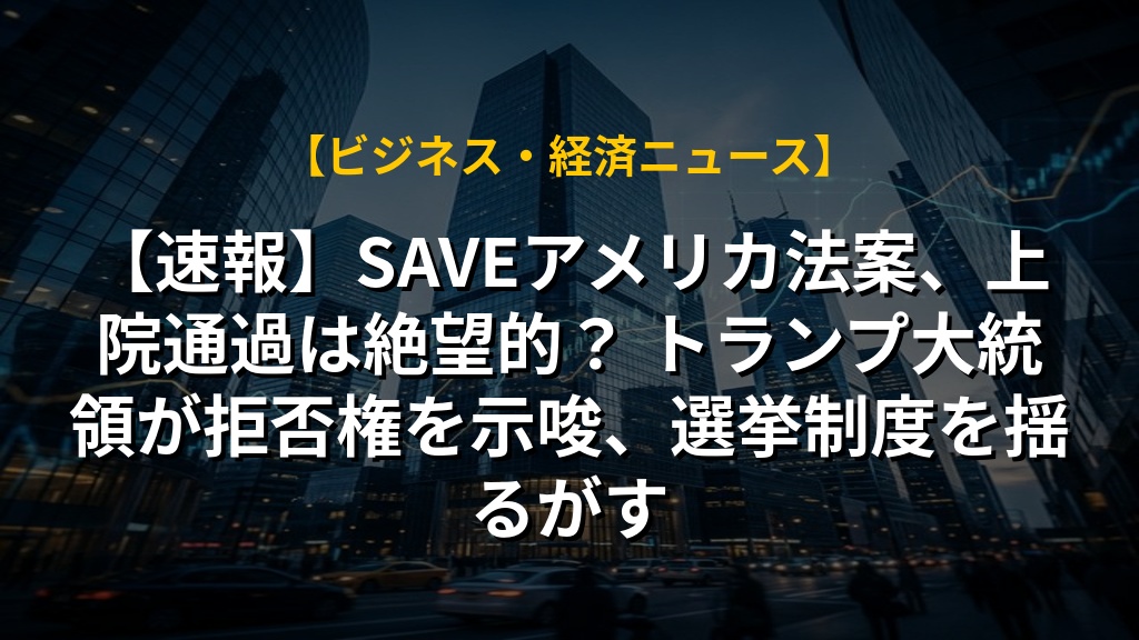 【速報】SAVEアメリカ法案、上院通過は絶望的? トランプ大統領が拒否権を示唆、選挙制度を揺るがす