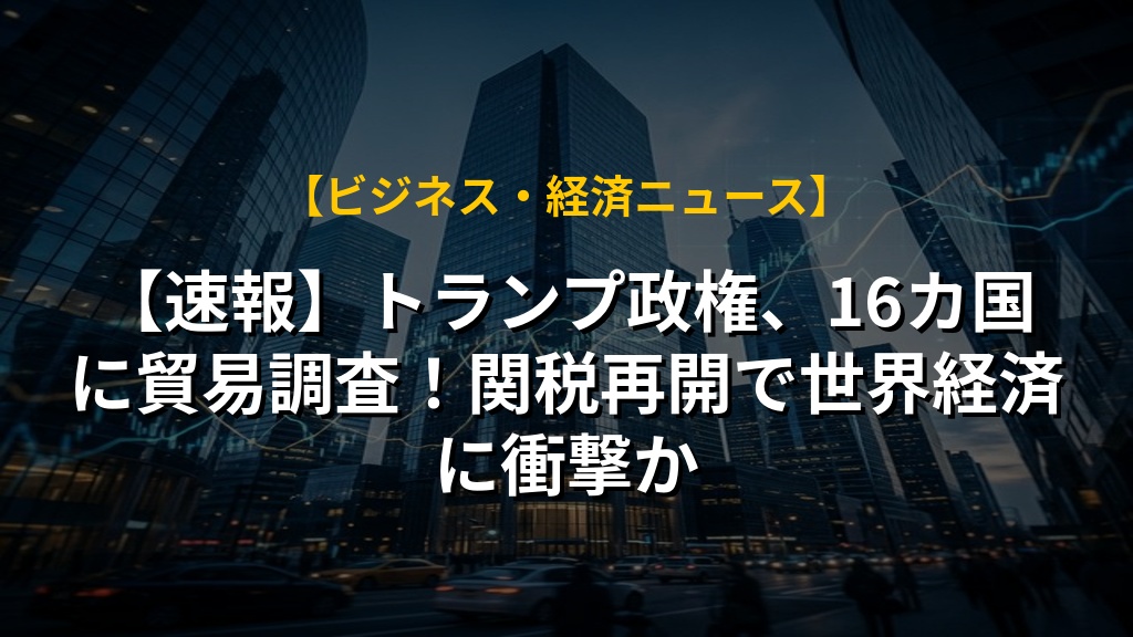 【速報】トランプ政権、16カ国に貿易調査!関税再開で世界経済に衝撃か