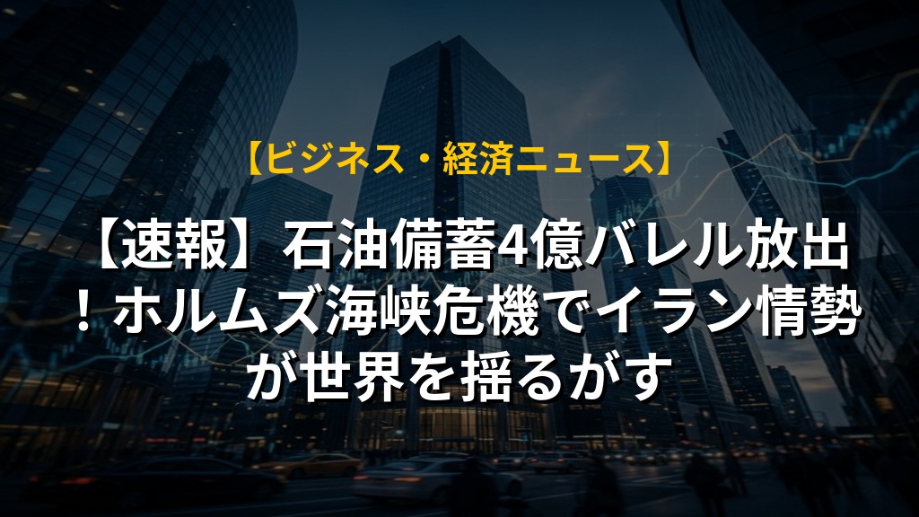 【速報】石油備蓄4億バレル放出!ホルムズ海峡危機でイラン情勢が世界を揺るがす