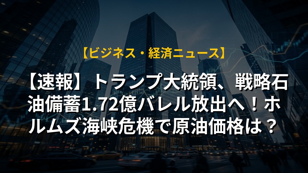 【速報】トランプ大統領、戦略石油備蓄1.72億バレル放出へ!ホルムズ海峡危機で原油価格は?