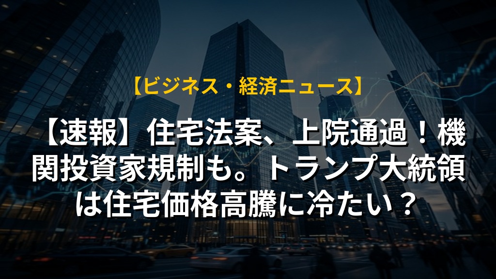 【速報】住宅法案、上院通過!機関投資家規制も。トランプ大統領は住宅価格高騰に冷たい?