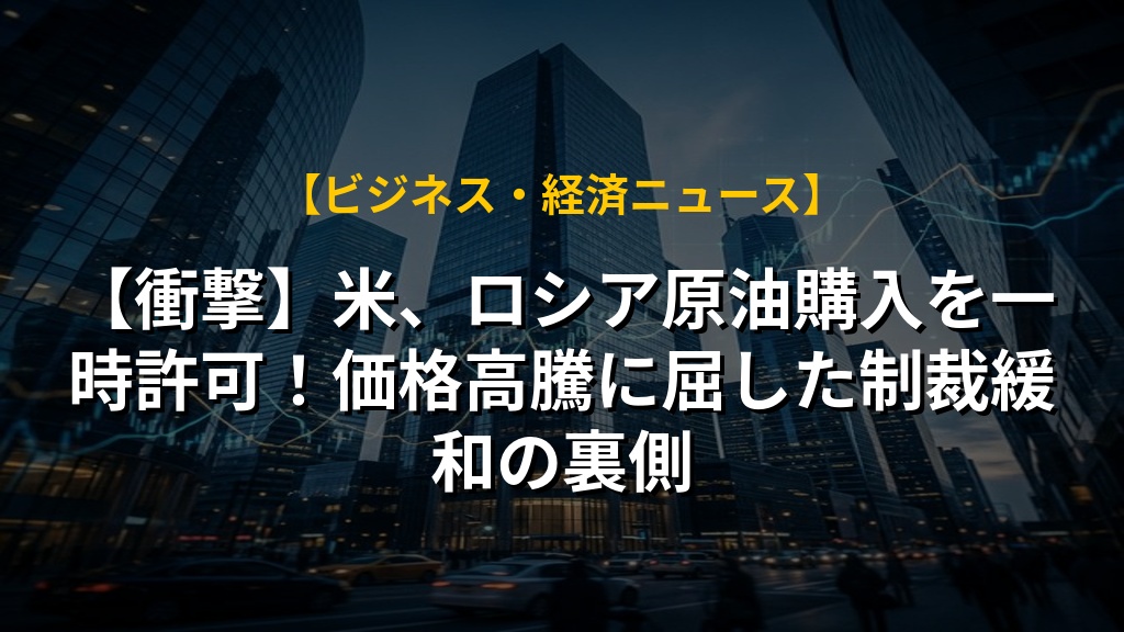 【衝撃】米、ロシア原油購入を一時許可!価格高騰に屈した制裁緩和の裏側