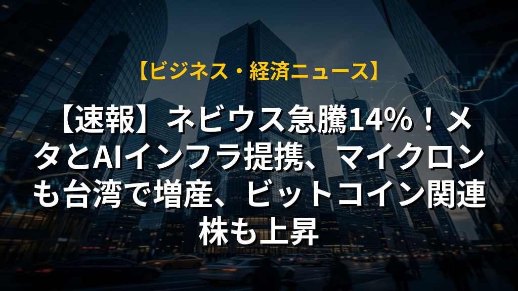 【速報】ネビウス急騰14%!メタとAIインフラ提携、マイクロンも台湾で増産、ビットコイン関連株も上昇