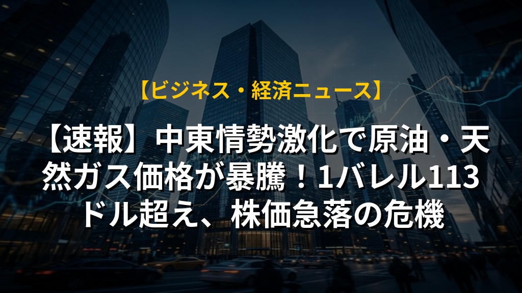 【速報】中東情勢激化で原油・天然ガス価格が暴騰!1バレル113ドル超え、株価急落の危機