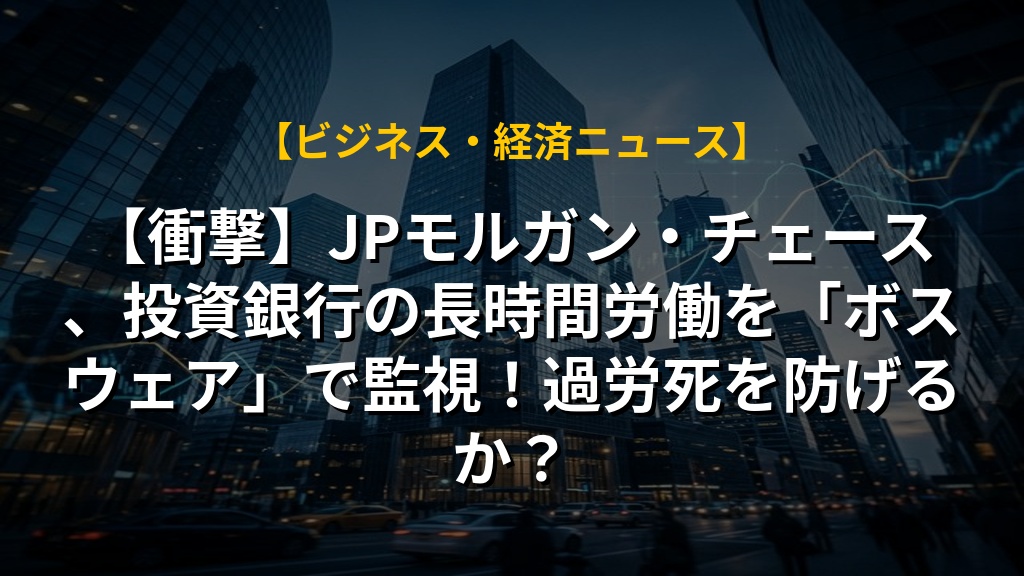 【衝撃】JPモルガン・チェース、投資銀行の長時間労働を「ボスウェア」で監視!過労死を防げるか?