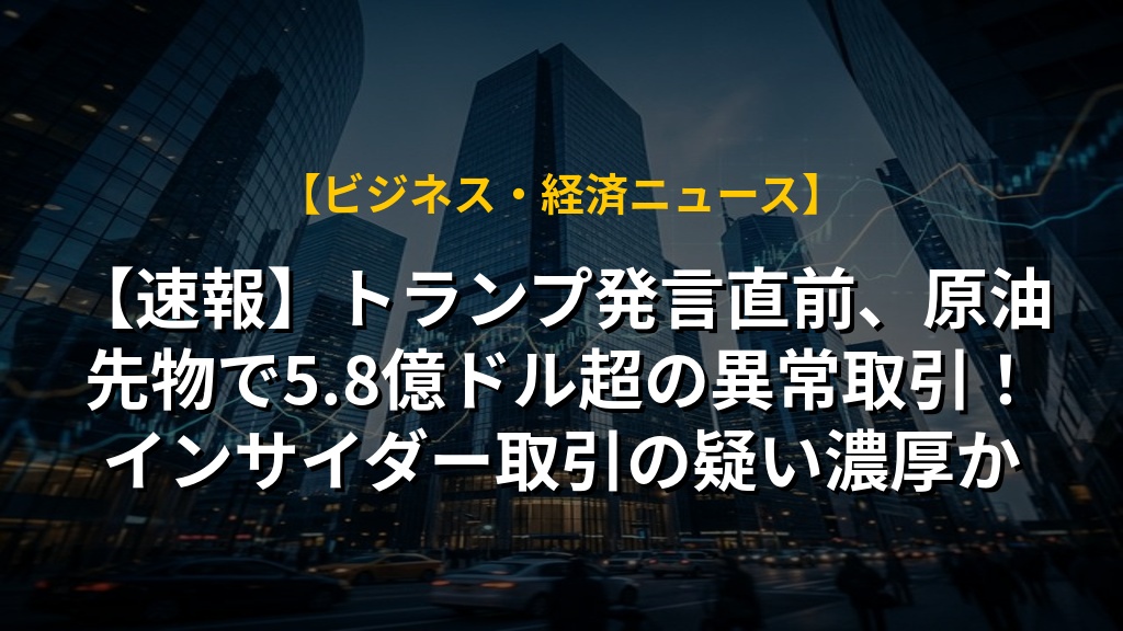 トランプ前大統領のイラン関連投稿前に原油先物取引が急増し、インサイダー取引の疑いが生じています。市場の透明性や公正性に対する疑念が高まる中、規制当局は監視体制を強化し、ルール策定を進めています。今回の事態は、情報格差を利用した不正行為の可能性を示唆しており、今後の調査結果によっては市場への信頼が揺らぐことも懸念されます。投資家の皆さんにとっては、市場の動向に注意しつつ、冷静な判断が求められる状況です。