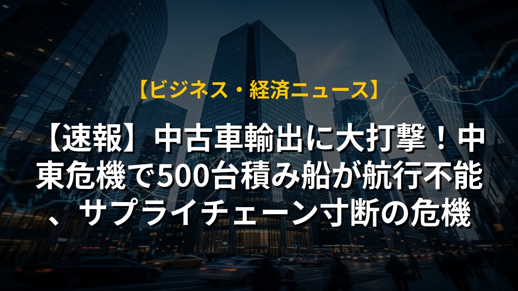 中東情勢の悪化が、意外な形で日本経済にも影響を与えていることがわかりますね。中古車輸出を手掛ける事業者のように、グローバルサプライチェーンの片隅にいる方々にも、地政学的リスクが直接的に影響を及ぼしている現状は、他人事ではありません。