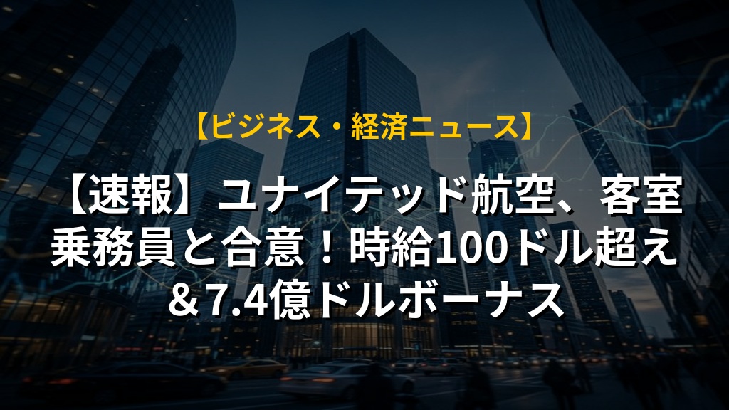 ユナイテッド航空と客室乗務員組合が、約6年ぶりの賃上げを含む仮合意に至りました。時給100ドルや7.4億ドル相当のボーナスに加え、遅延時の補償や夜間勤務の制限も盛り込まれ、労働環境改善への期待が高まります。