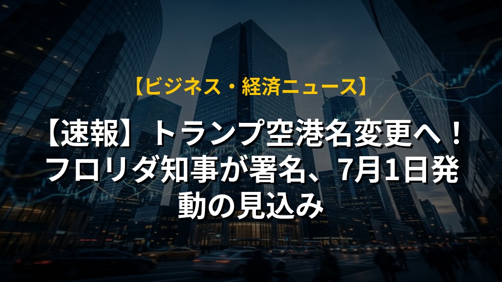 フロリダ州の空港名が、ドナルド・トランプ大統領にちなんで「プレジデント・ドナルド・J・トランプ国際空港」に変更されることが決定しました。連邦航空局の承認を待つ状態ですが、7月1日には新しい名称で運用される可能性があります。トランプ・オーガニゼーションは関連グッズの商標も出願しており、政治と商業の境界線が曖昧になる動きとも言えそうです。今後の連邦航空局の判断や、この事例が他地域に与える影響にも注目していきたいです。
