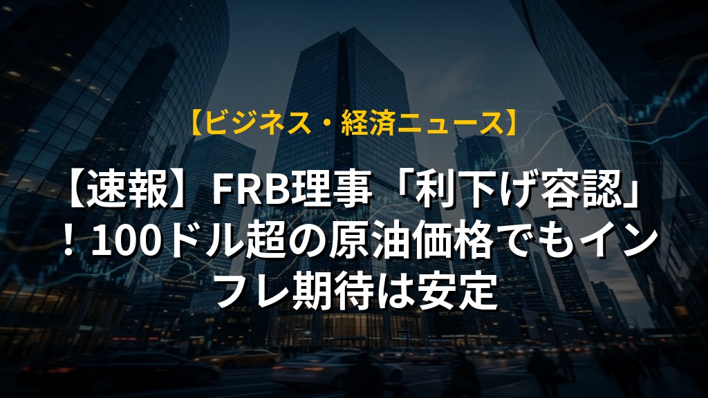 【速報】FRB理事「利下げ容認」!100ドル超の原油価格でもインフレ期待は安定