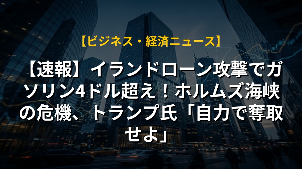 【速報】イランドローン攻撃でガソリン4ドル超え!ホルムズ海峡の危機、トランプ氏「自力で奪取せよ」