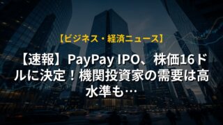 【速報】PayPay IPO、株価16ドルに決定!機関投資家の需要は高水準も…