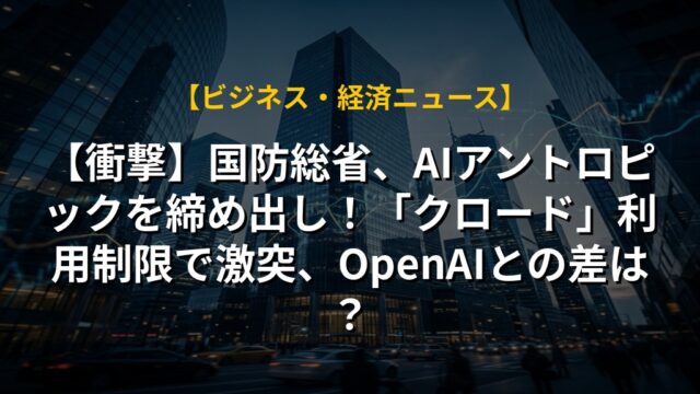 【衝撃】国防総省、AIアントロピックを締め出し!「クロード」利用制限で激突、OpenAIとの差は?
