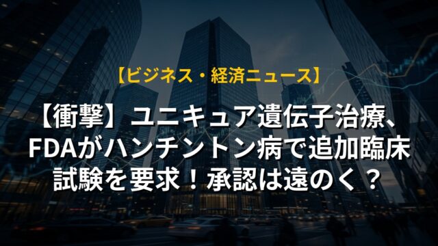 【衝撃】ユニキュア遺伝子治療、FDAがハンチントン病で追加臨床試験を要求!承認は遠のく?