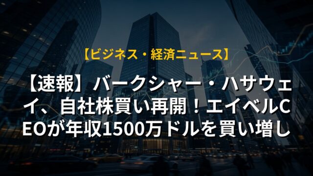 【速報】バークシャー・ハサウェイ、自社株買い再開!エイベルCEOが年収1500万ドルを買い増し