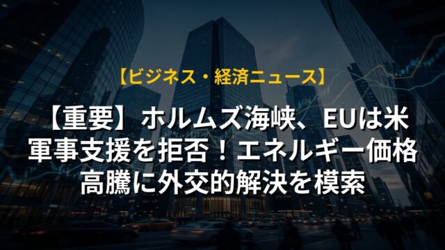【重要】ホルムズ海峡、EUは米軍事支援を拒否!エネルギー価格高騰に外交的解決を模索
