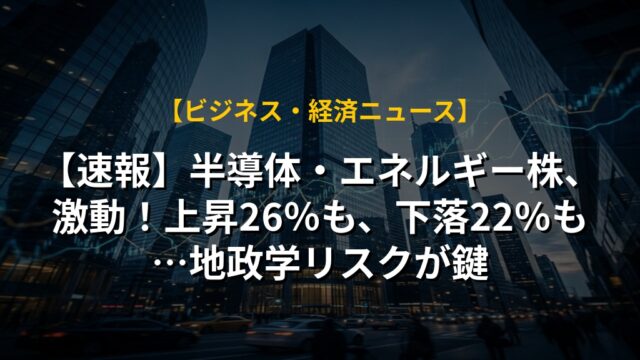 【速報】半導体・エネルギー株、激動!上昇26%も、下落22%も…地政学リスクが鍵