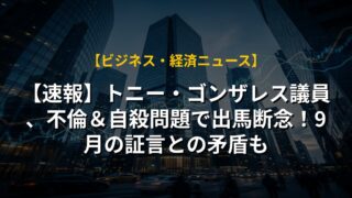 【速報】トニー・ゴンザレス議員、不倫&自殺問題で出馬断念!9月の証言との矛盾も