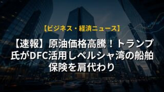 【速報】原油価格高騰!トランプ氏がDFC活用しペルシャ湾の船舶保険を肩代わり