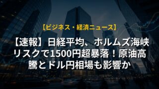 【速報】日経平均、ホルムズ海峡リスクで1500円超暴落!原油高騰とドル円相場も影響か