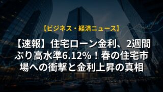 【速報】住宅ローン金利、2週間ぶり高水準6.12%!春の住宅市場への衝撃と金利上昇の真相