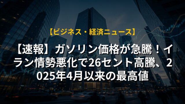 【速報】ガソリン価格が急騰!イラン情勢悪化で26セント高騰、2025年4月以来の最高値