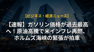 【速報】ガソリン価格が過去最高へ!原油高騰で米インフレ再燃、ホルムズ海峡の緊張が拍車