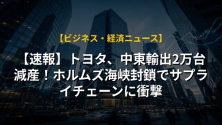 【速報】トヨタ、中東輸出2万台減産!ホルムズ海峡封鎖でサプライチェーンに衝撃