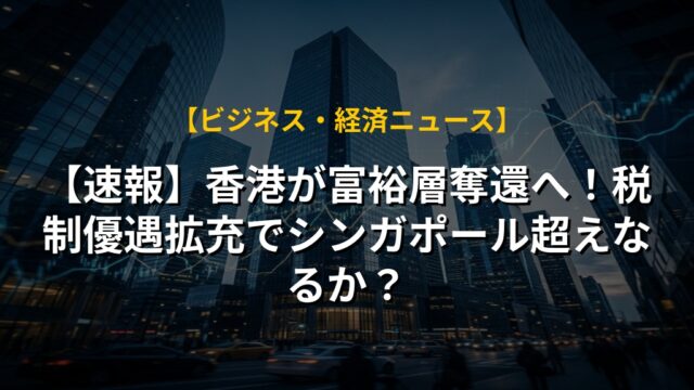 【速報】香港が富裕層奪還へ!税制優遇拡充でシンガポール超えなるか?