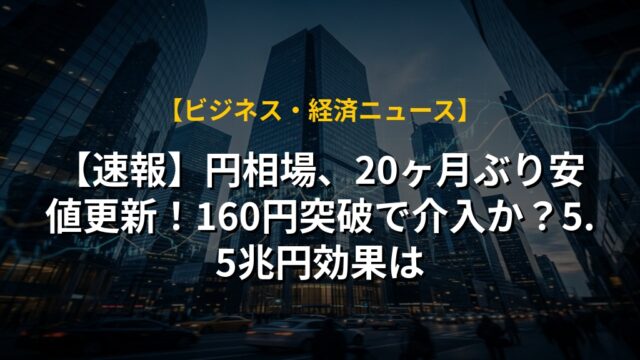 【速報】円相場、20ヶ月ぶり安値更新!160円突破で介入か?5.5兆円効果は