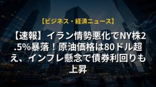 【速報】イラン情勢悪化でNY株2.5%暴落!原油価格は80ドル超え、インフレ懸念で債券利回りも上昇