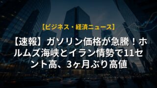 【速報】ガソリン価格が急騰!ホルムズ海峡とイラン情勢で11セント高、3ヶ月ぶり高値