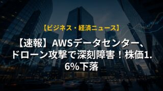 【速報】AWSデータセンター、ドローン攻撃で深刻障害!株価1.6%下落