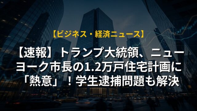 【速報】トランプ大統領、ニューヨーク市長の1.2万戸住宅計画に「熱意」!学生逮捕問題も解決